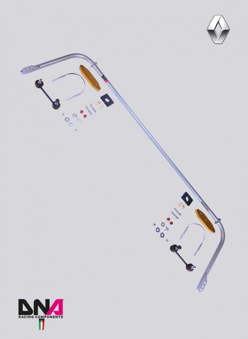 Il kit è composto da una barra antirollio posteriore in acciaio armonico al silicio registrabile in 3 posizioni e due set di tiranti in acciaio inox su uniball di derivazione motorsport (che nessuno generalmente fornisce), più inediti supporti su cuscinetti scomponibili caricati a Nylon a gioco zero.