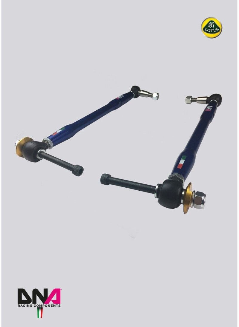 Il kit DNA Racing tiranti convergenza su uniball è composto da tiranti in Ergal 7075 T6 da 25mm alleggeriti ricavati da pieno, snodi sferici composti da uniball motorsport, relative protezioni contro lo sporco, che ne garantiscono la durata anche nell'uso stradale, distanziali in Ergal anodizzati blu e resistentissimi alberini conici realizzati in Cromo Molibdeno.