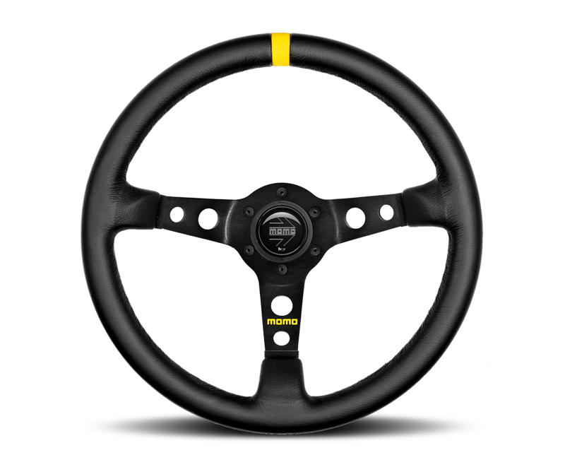 Diametro: 350mm / 13.8 inches Impugnatura rotonda Calicciatura: 70mm Montabile con Mozzo MOMO Include kit pulsante clacson Pelle Liscia o pelle scamosciata
