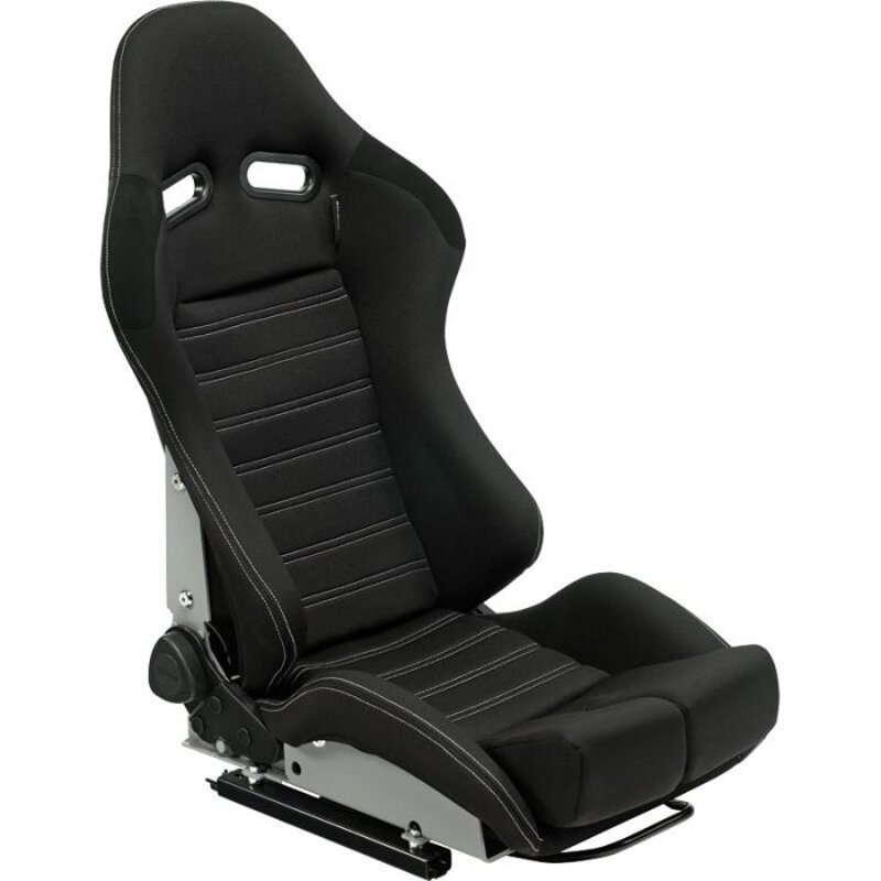Sedile Reclinabile in Tessuto Nero con Cuciture Bianche - Schienale Rigido in Vetroresina colorazione Nero Lucido.